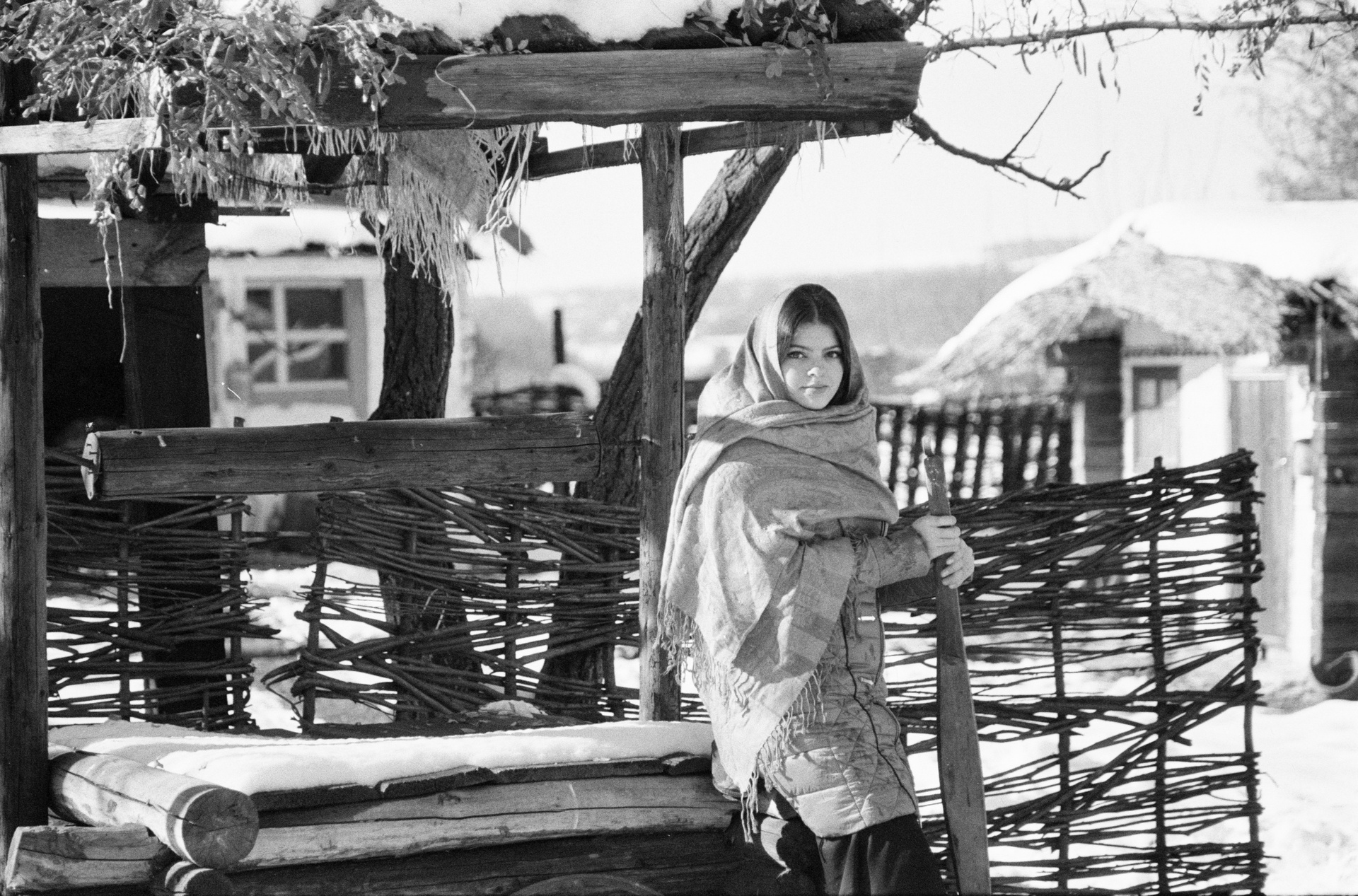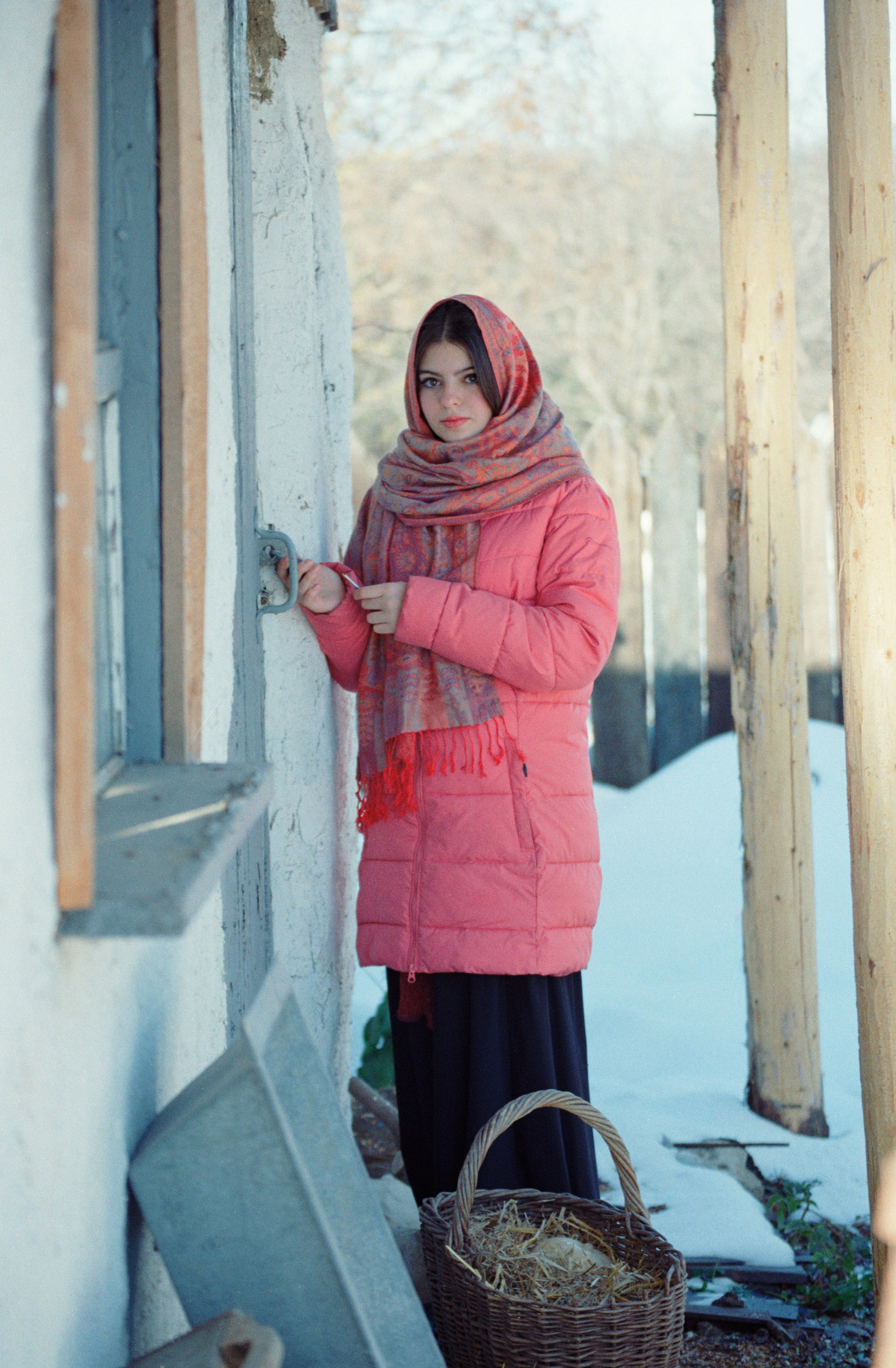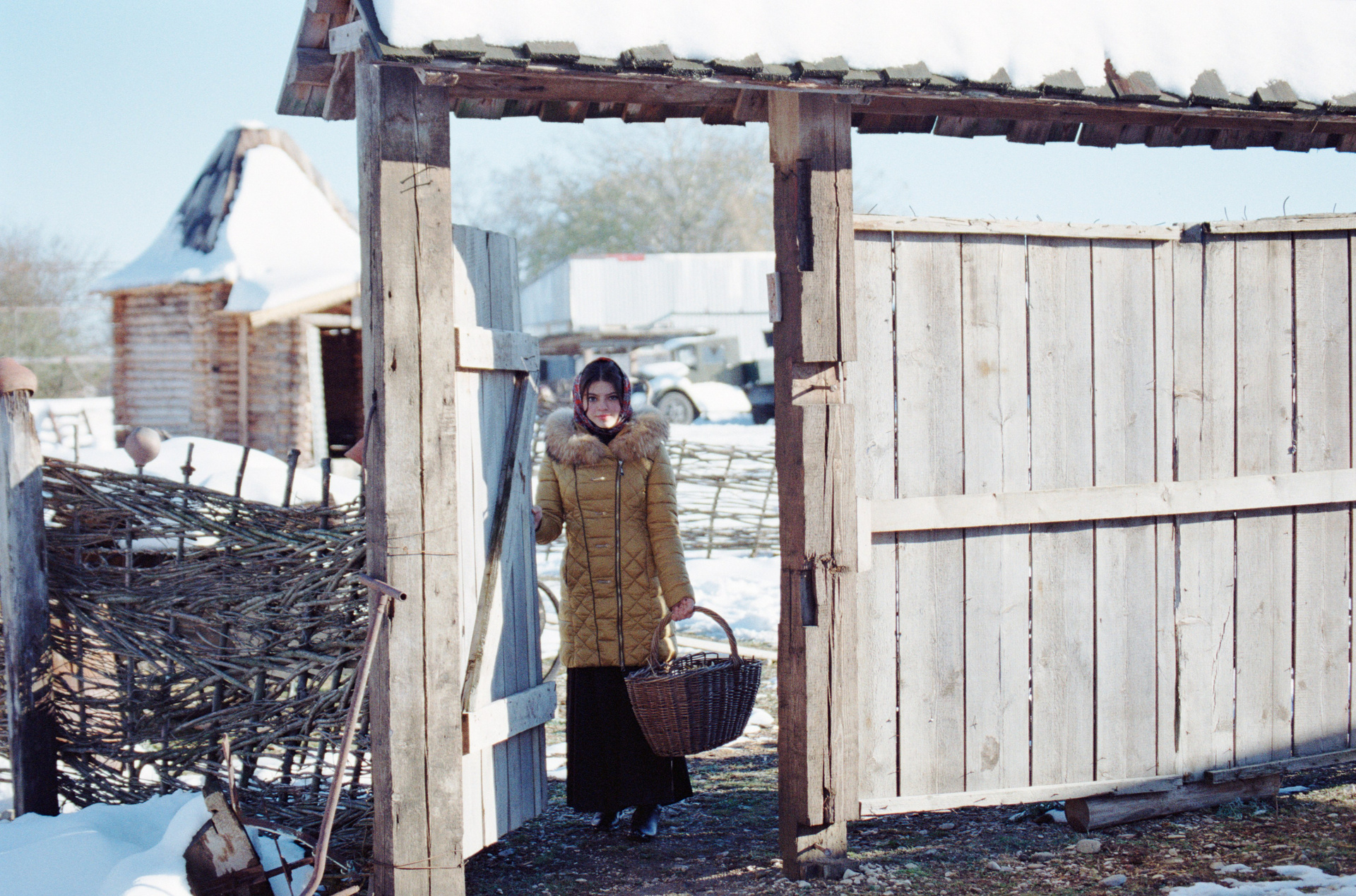 Идея давно крутилась в голове поснимать в «Казачьем Подворье», но всё никак не доходили руки. Весну и лето пропустил, пришла зима. Зимы у нас на КМВ не очень, а тут выпал снег «пушистый», нужно было быстро пользоваться таким подарком. Пригласил юную модель Полину и сделали серию снимков на пленку. 2 ролика Цветной и Черно-белый.