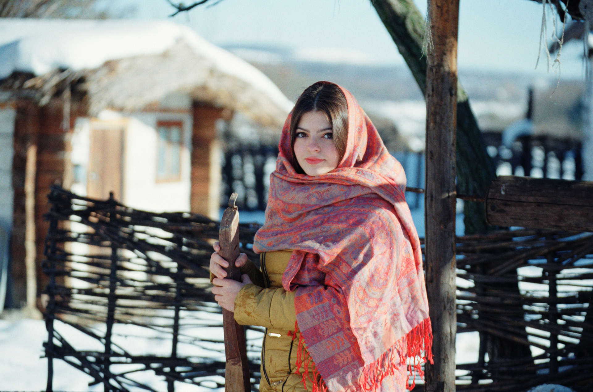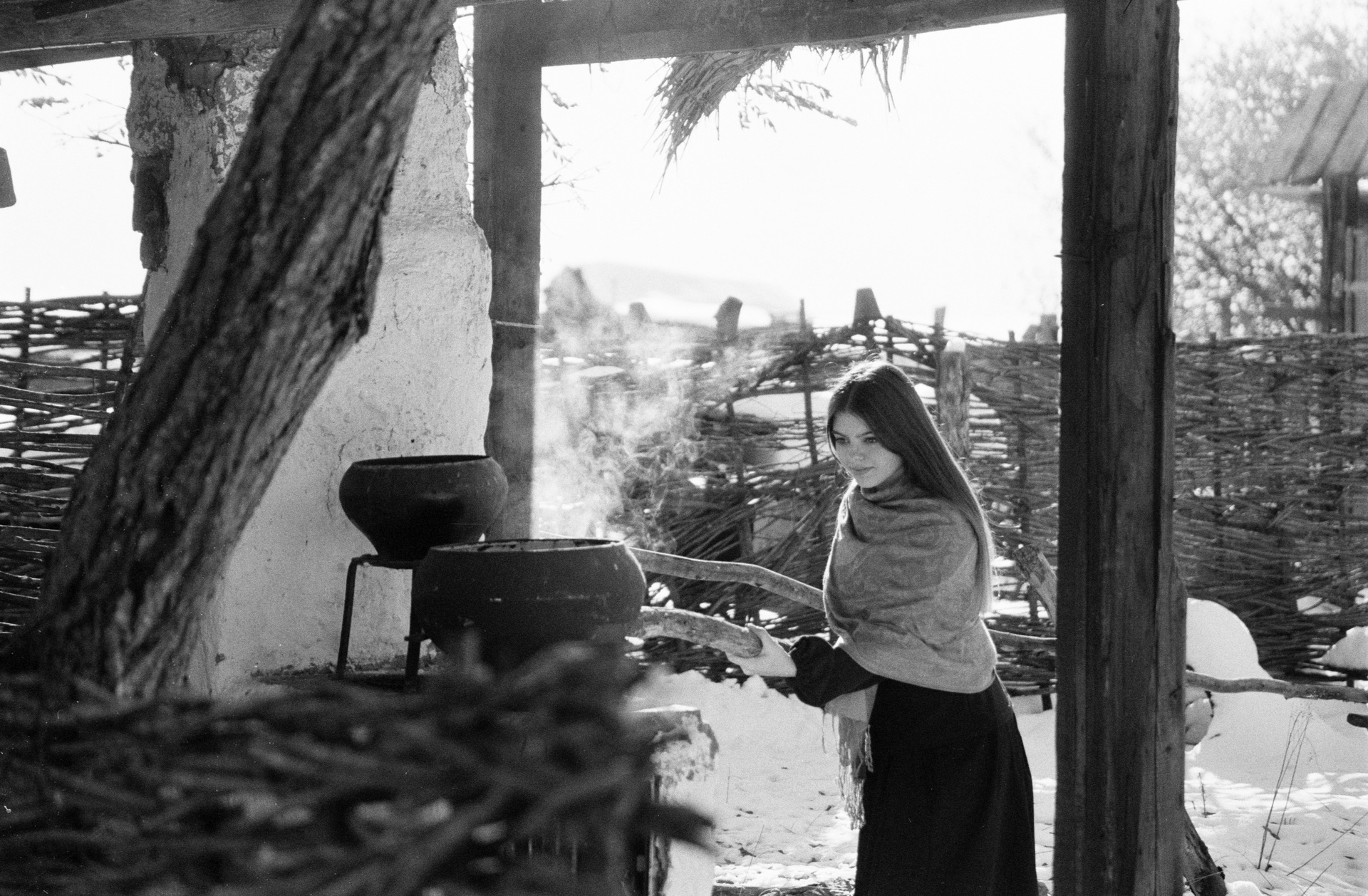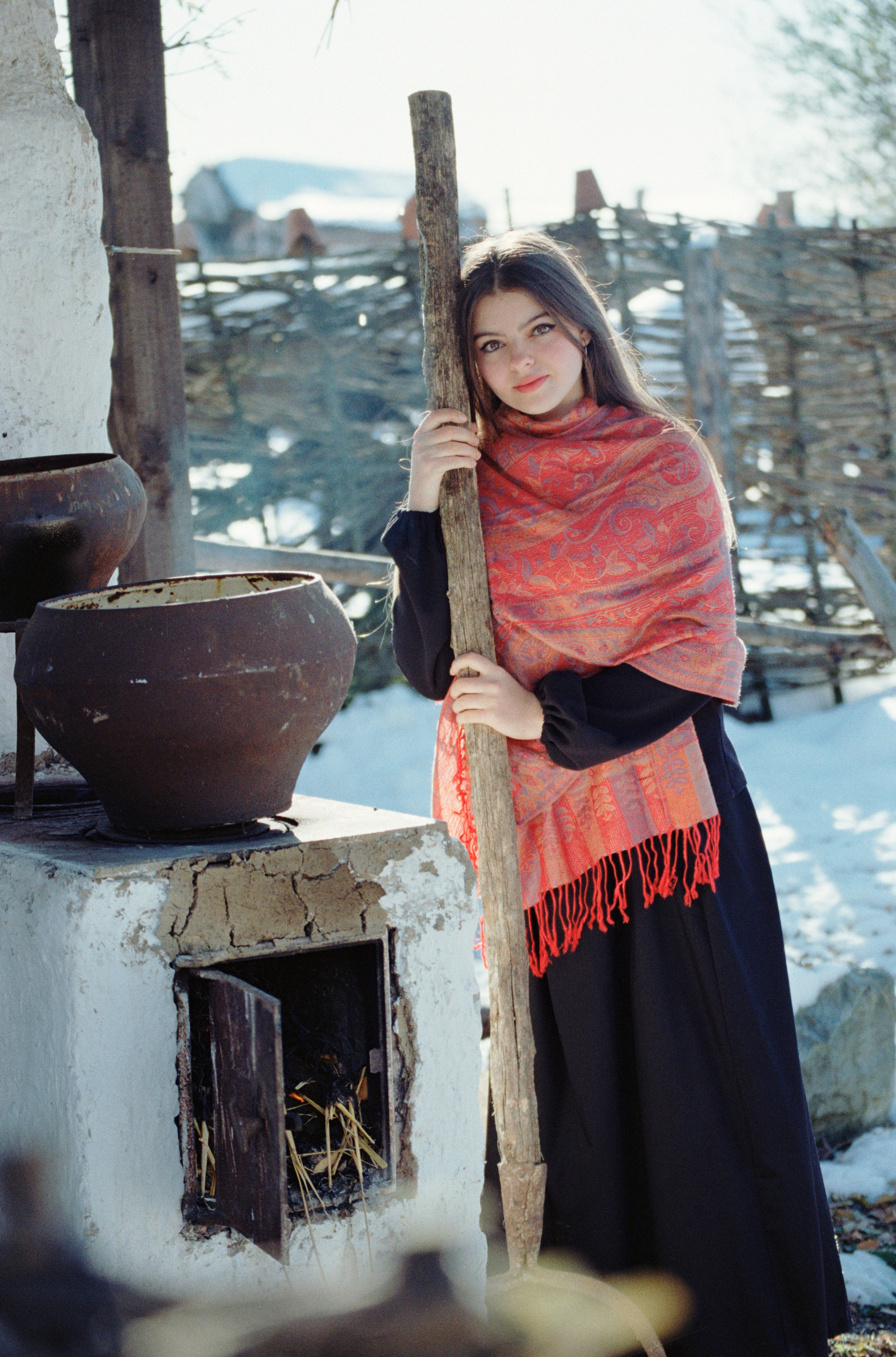 Идея давно крутилась в голове поснимать в «Казачьем Подворье», но всё никак не доходили руки. Весну и лето пропустил, пришла зима. Зимы у нас на КМВ не очень, а тут выпал снег «пушистый», нужно было быстро пользоваться таким подарком. Пригласил юную модель Полину и сделали серию снимков на пленку. 2 ролика Цветной и Черно-белый.